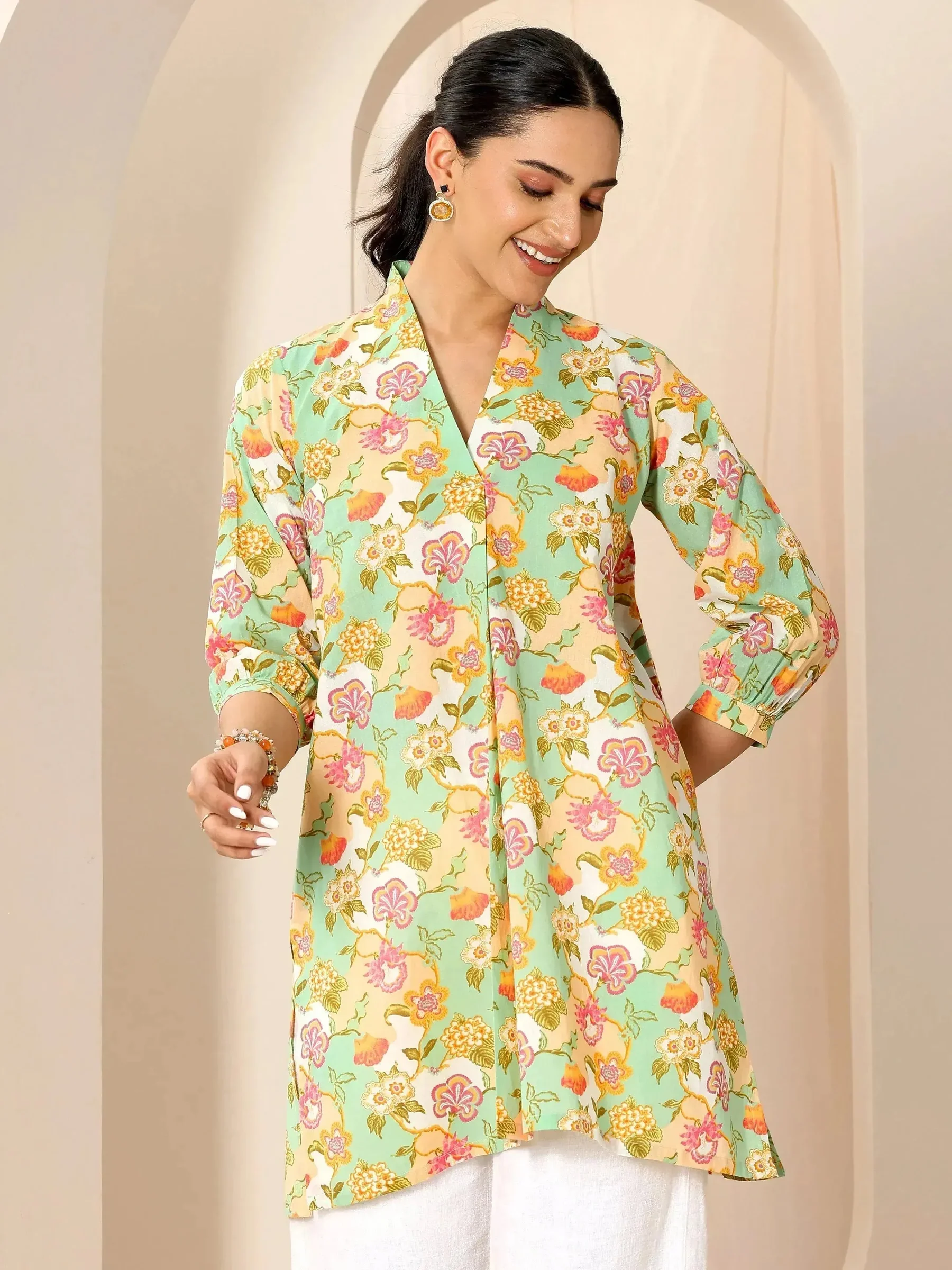 Multicoloured Printed Cotton Blend Straight Short Kurti