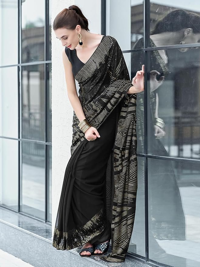 Women’s Georgette Sequence Work Saree with Unstitched Blouse Piece